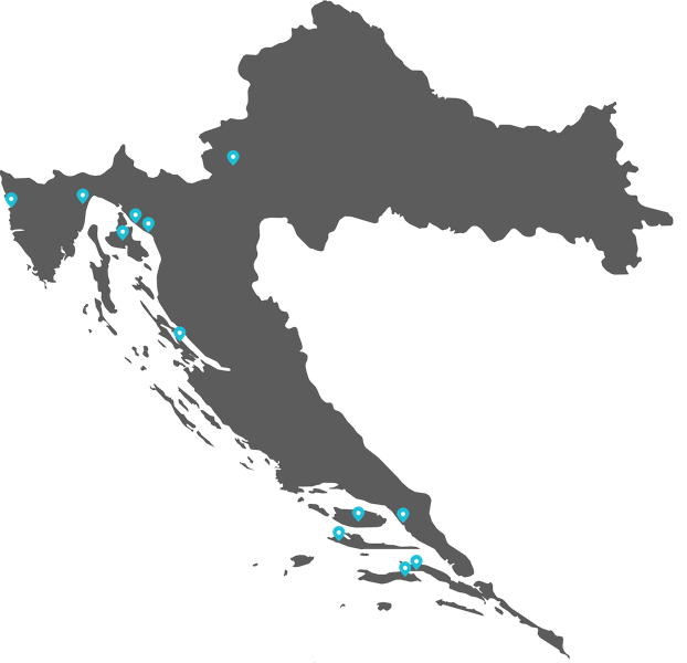 Naši hoteli, kampovi i resorti nalaze se i posluju: u Istri, na otocima Krku i Pagu, Karlovcu, Crikvenici, Novom Vinodolskom, Opatiji, Makarskoj, na otocima Hvaru, Braču i Korčuli te na poluotoku Pelješcu.